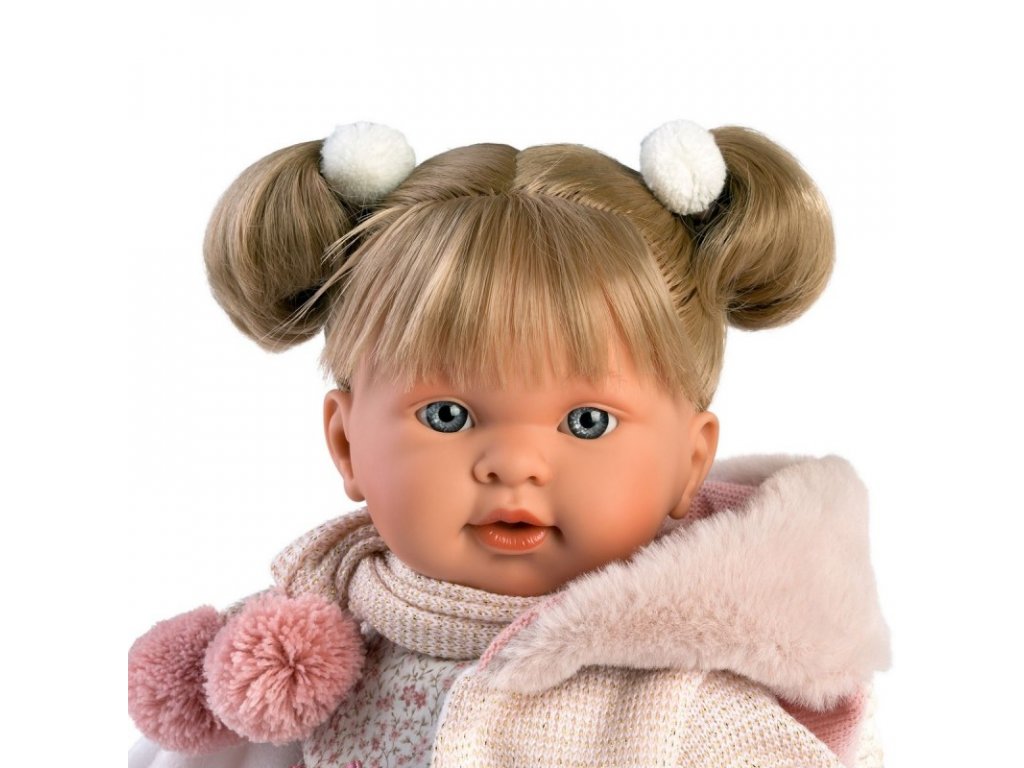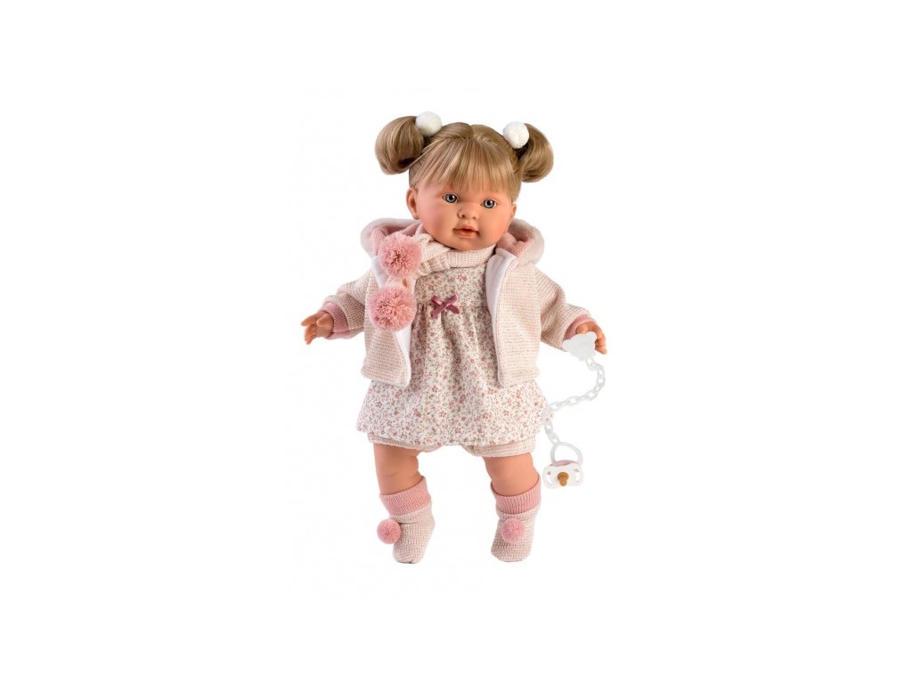 Hovoriaca bábika s mäkkým látkovým telom a s vláskami po celej hlave. Po vytiahnutí cumlíka z úst začne bábika hovoriť „mama“, „papa“ a vydávať reálny zvuk plačúceho bábätka. Bábiku možno utíšiť cumlíkom.