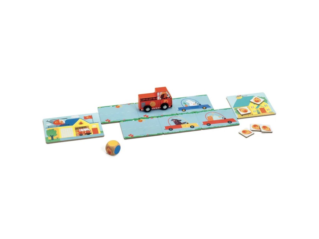 Djeco Horí! Horí! je napínavá kooperatívna spoločenská hra pre deti, kde sa hráči spoja ako tím a spoločne sa snažia uvoľniť cestu pre hasičské auto. Hra je určená pre 2 – 4 hráčov od 3 do 10 rokov a jedna hra trvá približne 15 minút.