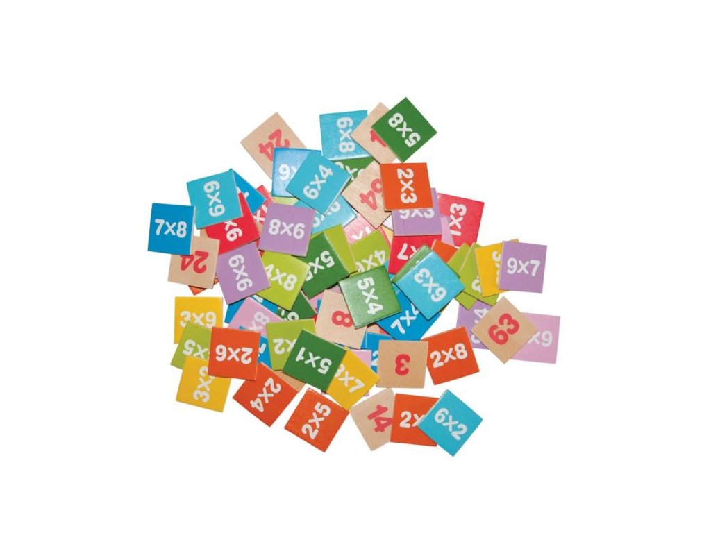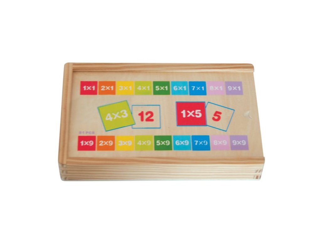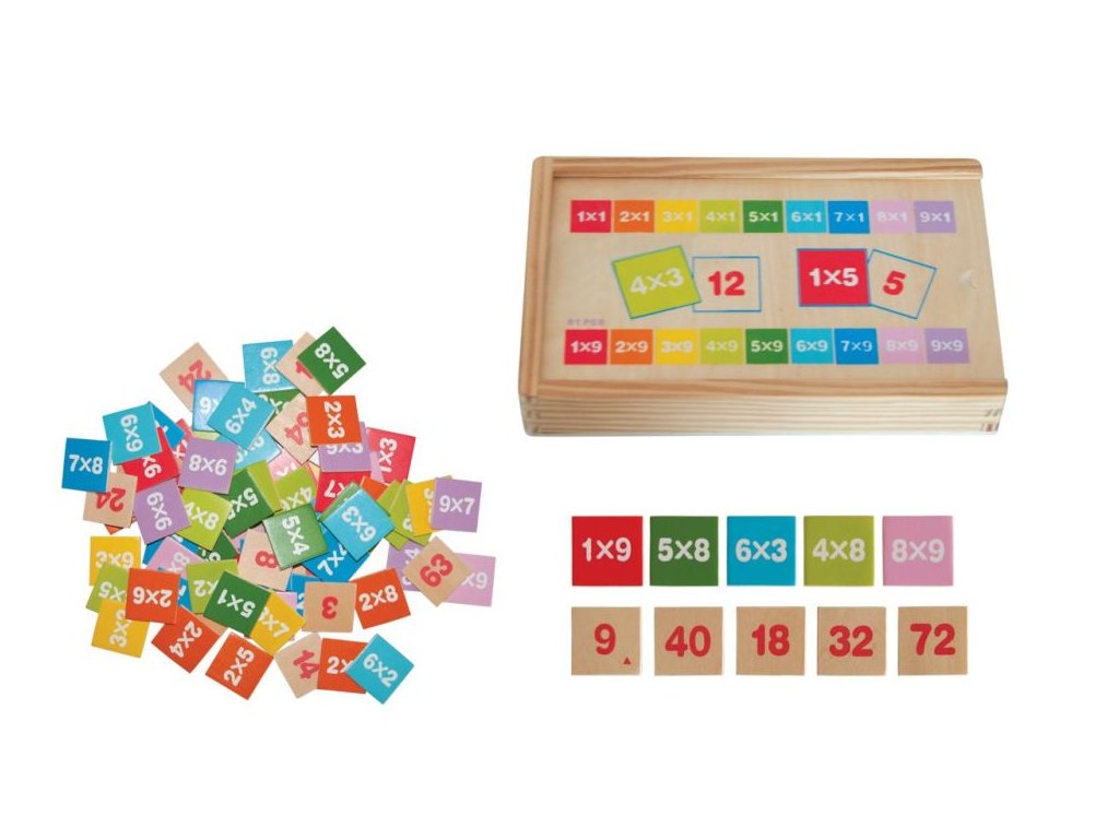 - 81 drevených kartičiek s príkladmi malej násobilky (1 × 1 až 9 × 9)