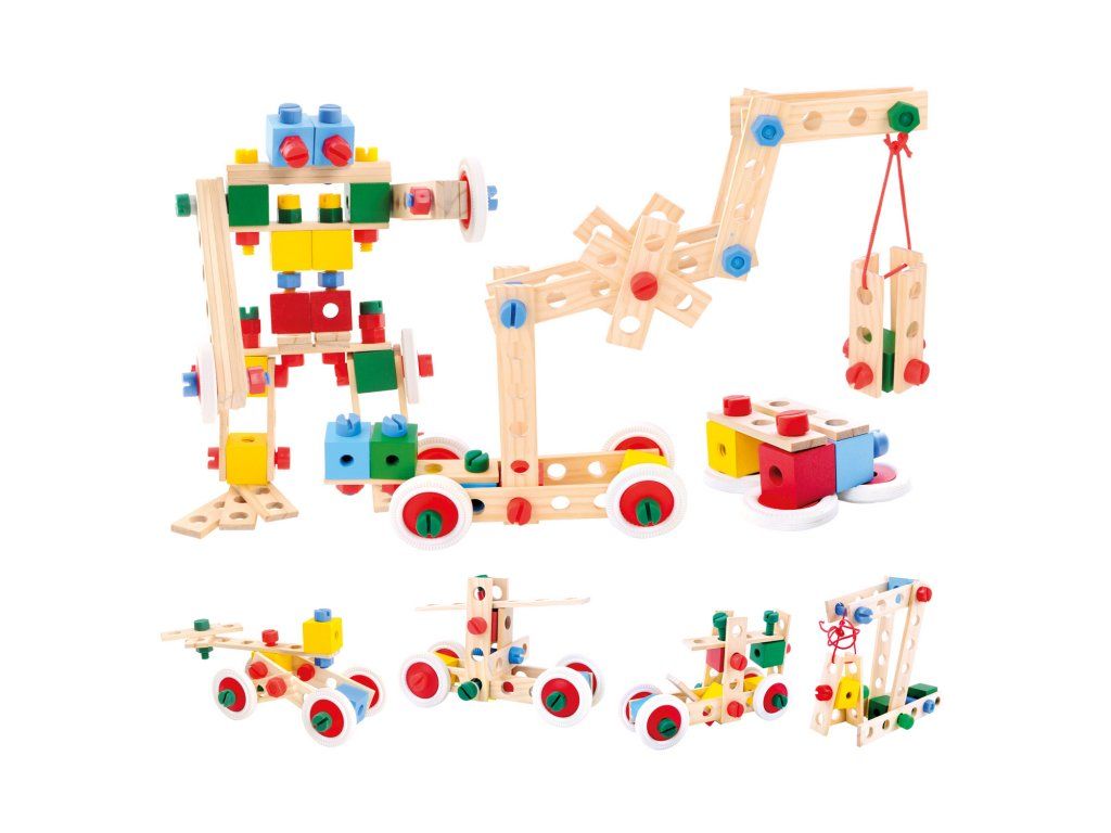 Drevená súprava pre malých majstrov! Zahrajte sa na konštruktérov a zostavte si hračku pomocou skrutiek, matíc, kľúčov, blokov a drevených konštrukcií!