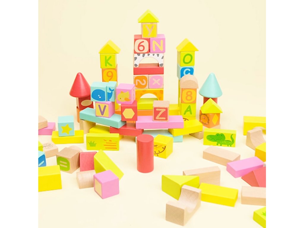 Drevené kocky s písmenami a číslicami 100 ks 12m+
