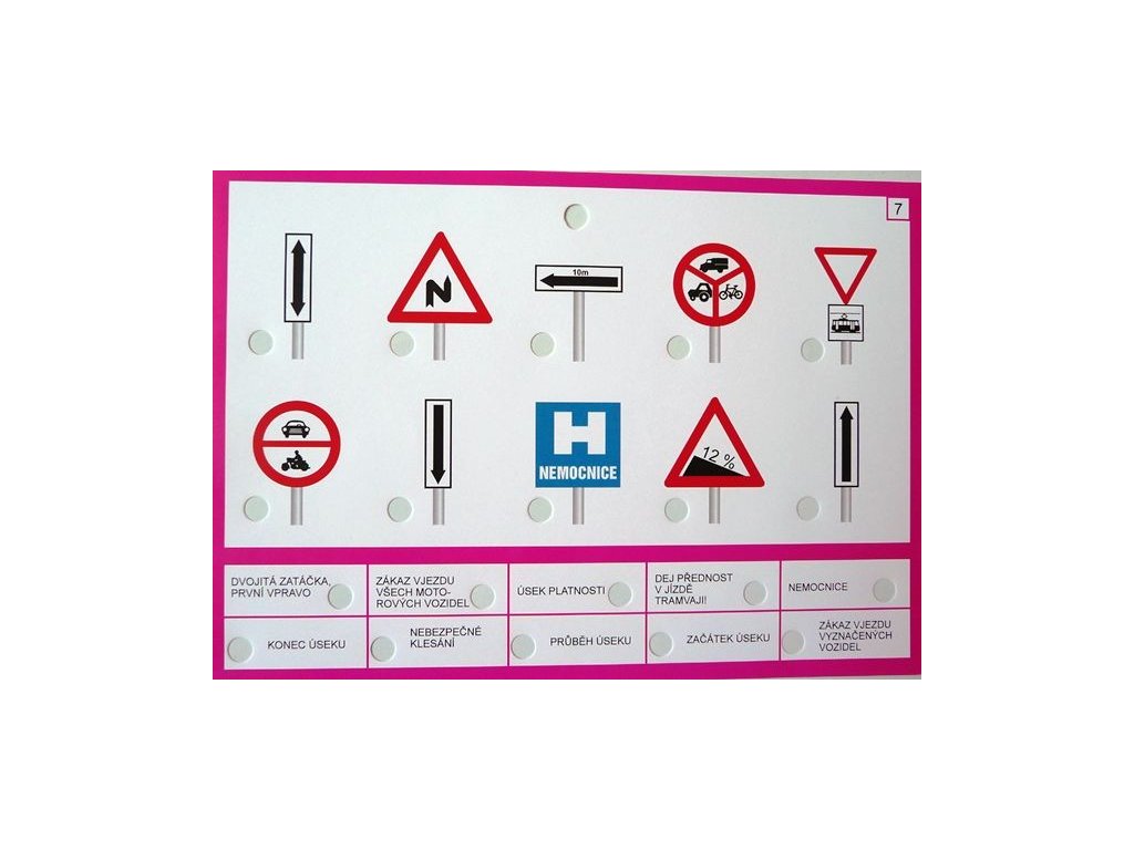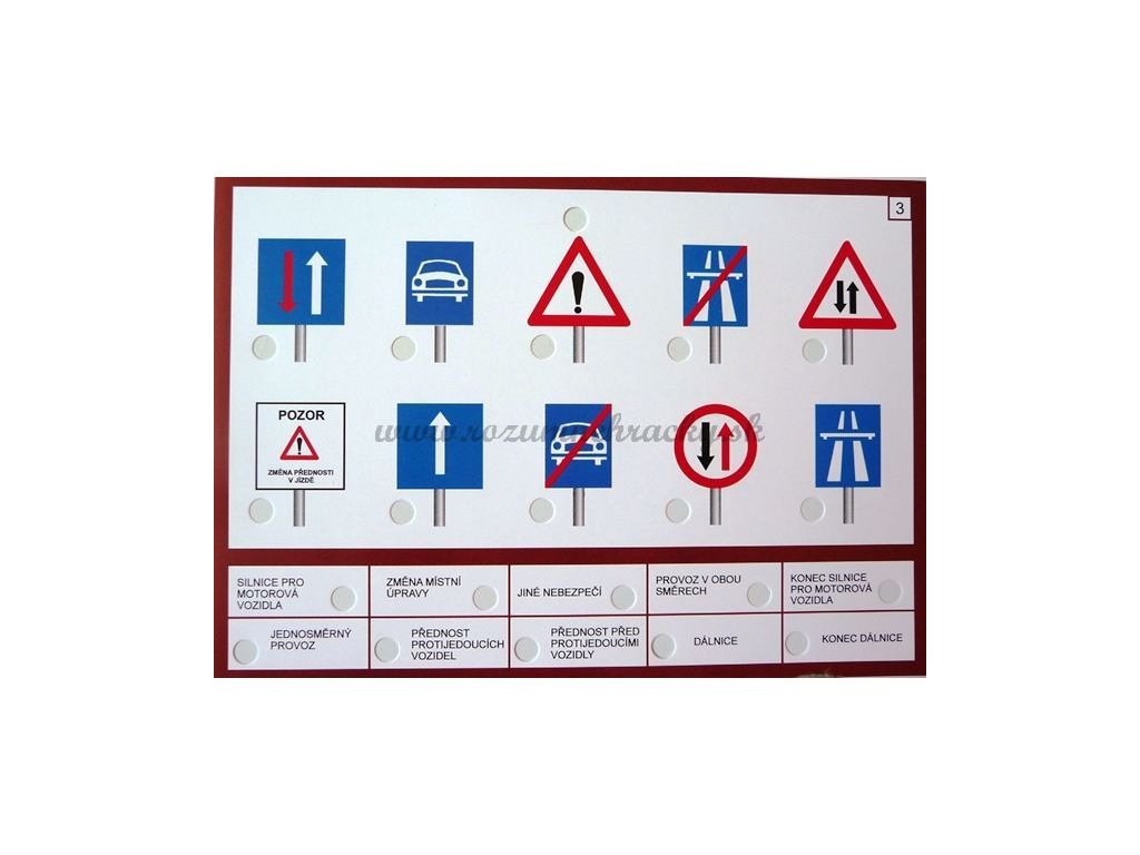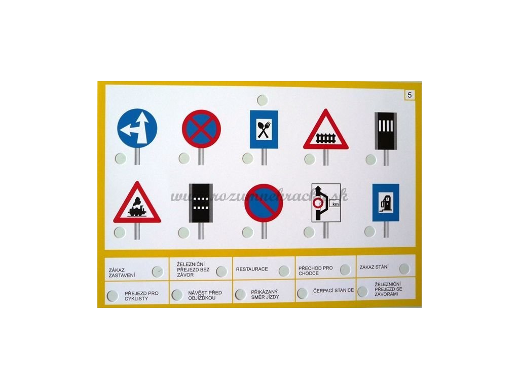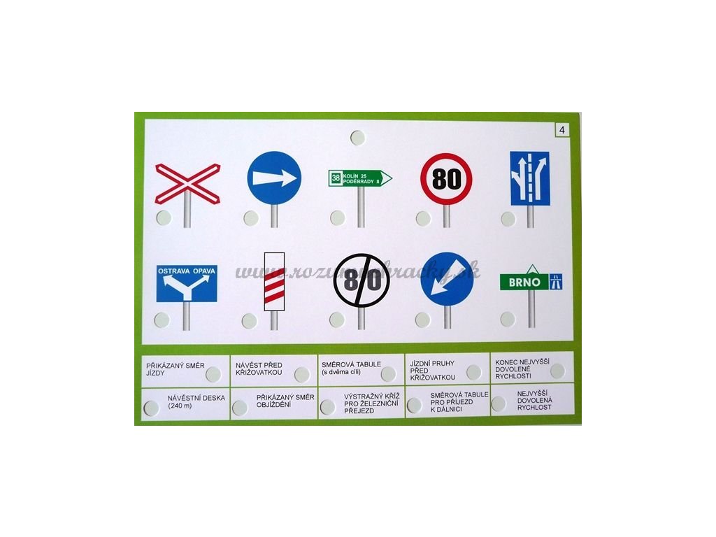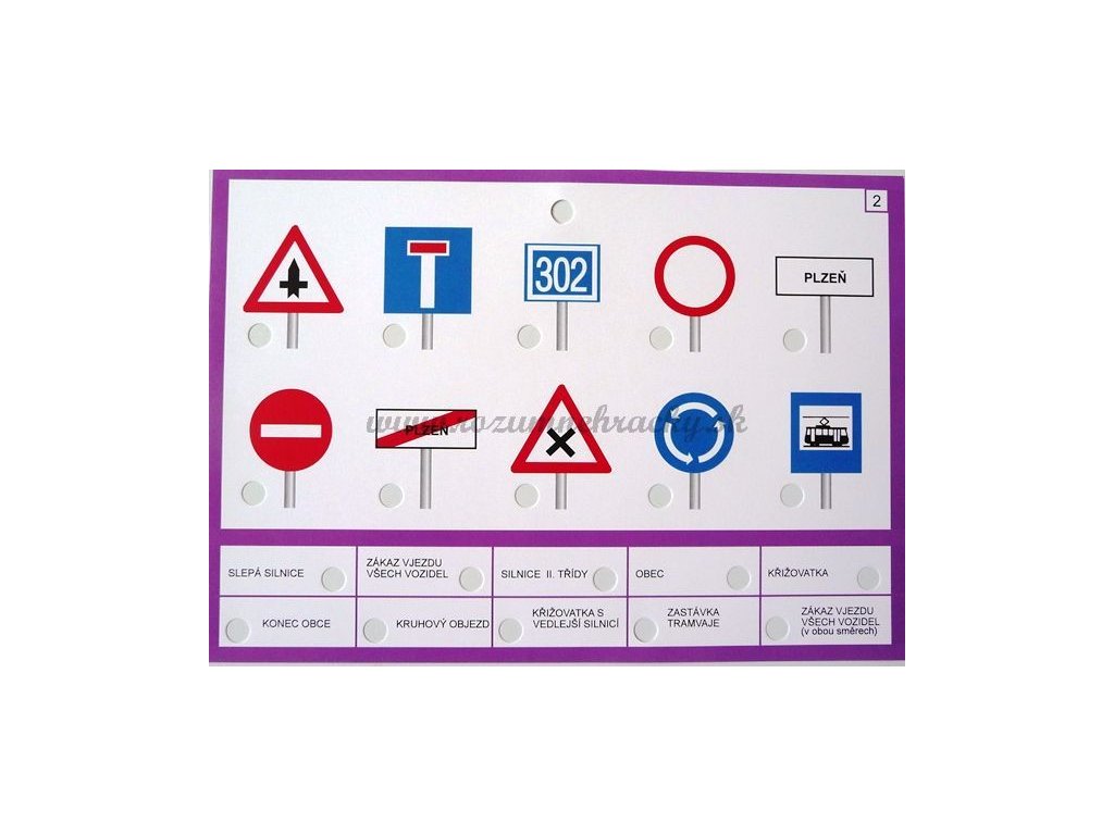 Dopravné značky je detská náučná hra, pomocou ktorej sa naučia hravou formou 80 dopravných značiek. Hra obsahuje 8 výmenných listov s 80 najbežnejšími dopravnými značkami. Úlohou je priradiť ku každej značke správny názov.