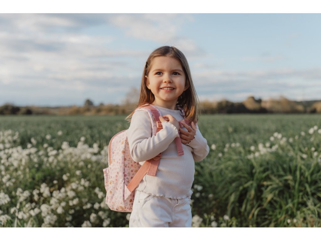 Rozkošný detský batoh od Little Dutch s motívmi zvieratiek a motívmi zo života z kolekcie Fairy Garden je praktickým aj štýlovým doplnkom na výlety do prírody, škôlky aj do mesta. Batoh má nastaviteľné ramenné popruhy, hrudný pás pre stabilitu a držadlo pre pohodlné nosenie v ruke.