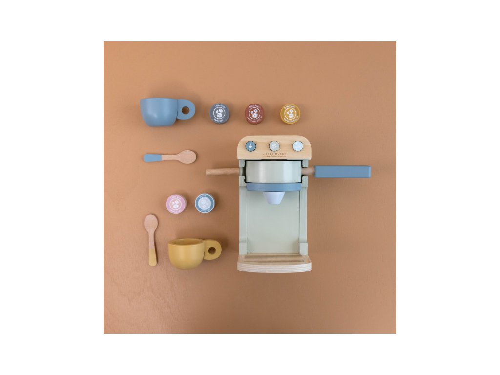 Drevený kávovar Little Dutch je ideálnym doplnkom do každej detskej kuchynky. Deti milujú rolové hry, pri ktorých napodobňujú dospelých, a s týmto kávovarom si môžu pripraviť lahodné cappuccino, espresso, lungo, coffe či latte macchiato. Stačí vložiť kapsulu a malí baristi môžu servírovať kávu hosťom.