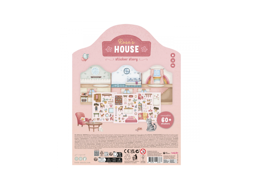 Vďaka opakovane použiteľným, jemne vystúpeným samolepkám môžu deti ozdobiť Rosin dom stále znova. Samolepky sa ľahko lepia aj odlepujú a spolu s pevnými papierovými stránkami sú ideálne na tvorivé hranie doma aj na cestách. Deti tak objavujú svet fantázie a učia sa vytvárať vlastné príbehy.