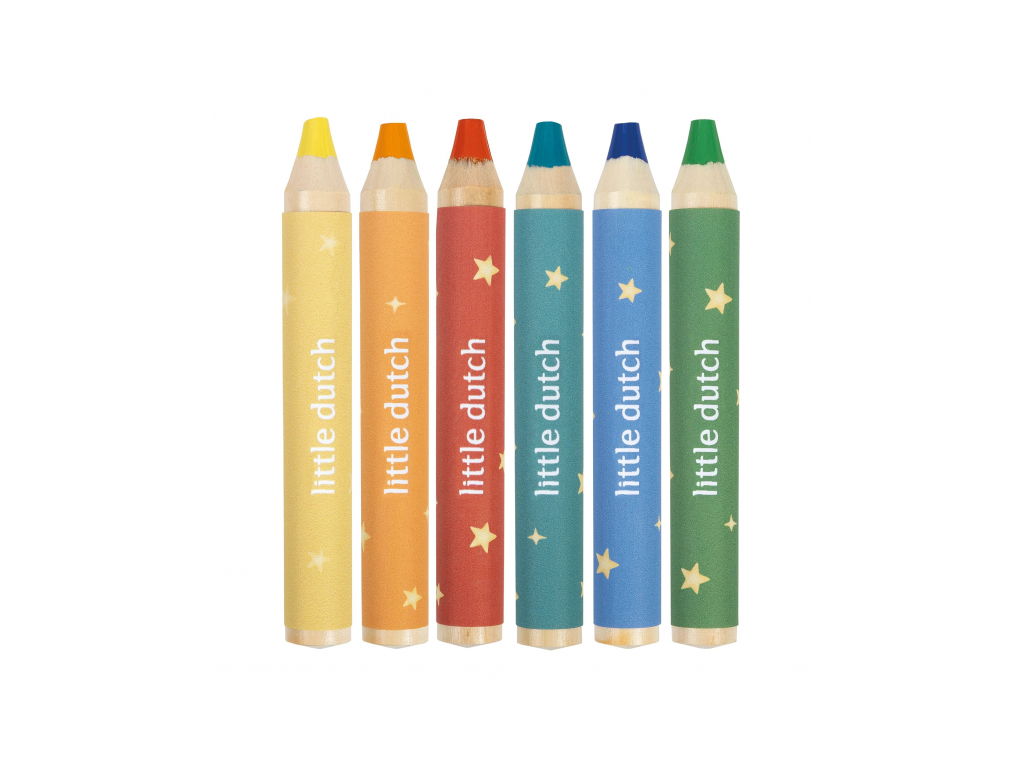 Sada 6 krátkych a hrubších pasteliek v typických farbách Little Dutch umožňuje deťom vytvárať krásne obrázky a objavovať svet farieb. Pastelky sú ideálne na dlhé chvíle vyfarbovania, spoločné tvorenie a rozvíjanie detskej fantázie. Skvele sa kombinujú aj s ďalšími kreatívnymi pomôckami Little Dutch.