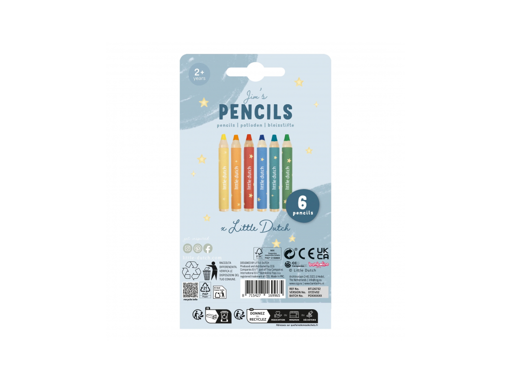 Podporte prvé umelecké pokusy detí s jemnými farbami. Pastelky Little Dutch z kolekcie Jim sú navrhnuté špeciálne pre malé detské ruky, aby sa im dobre držali a kreslenie bolo prirodzené a pohodlné.