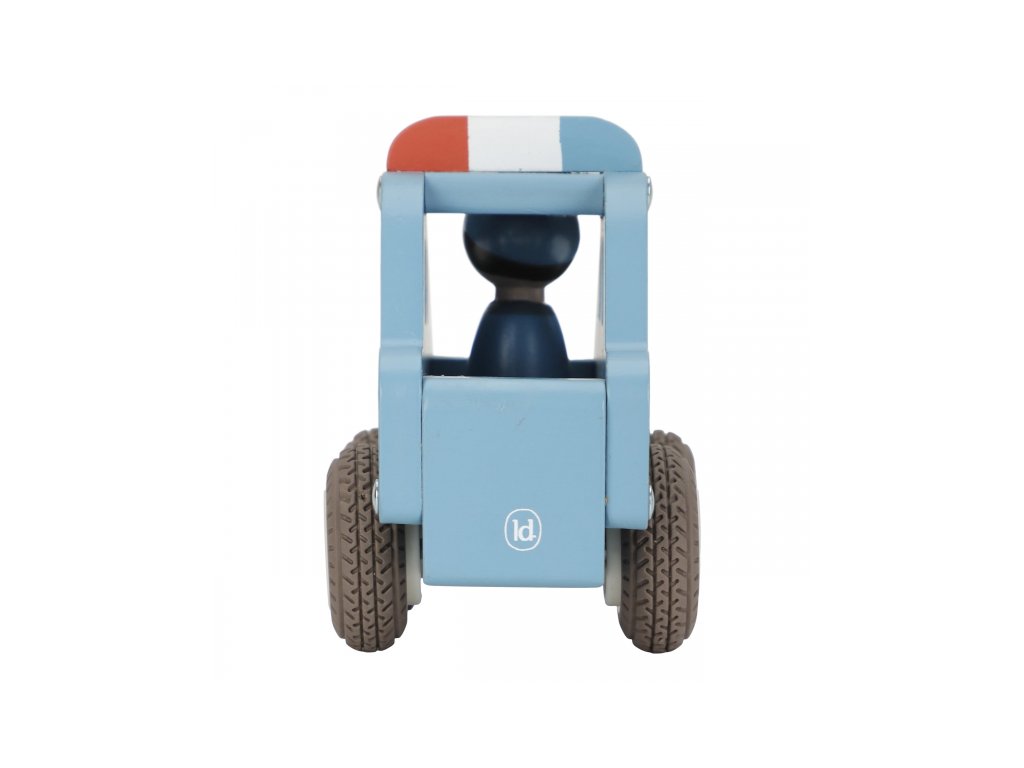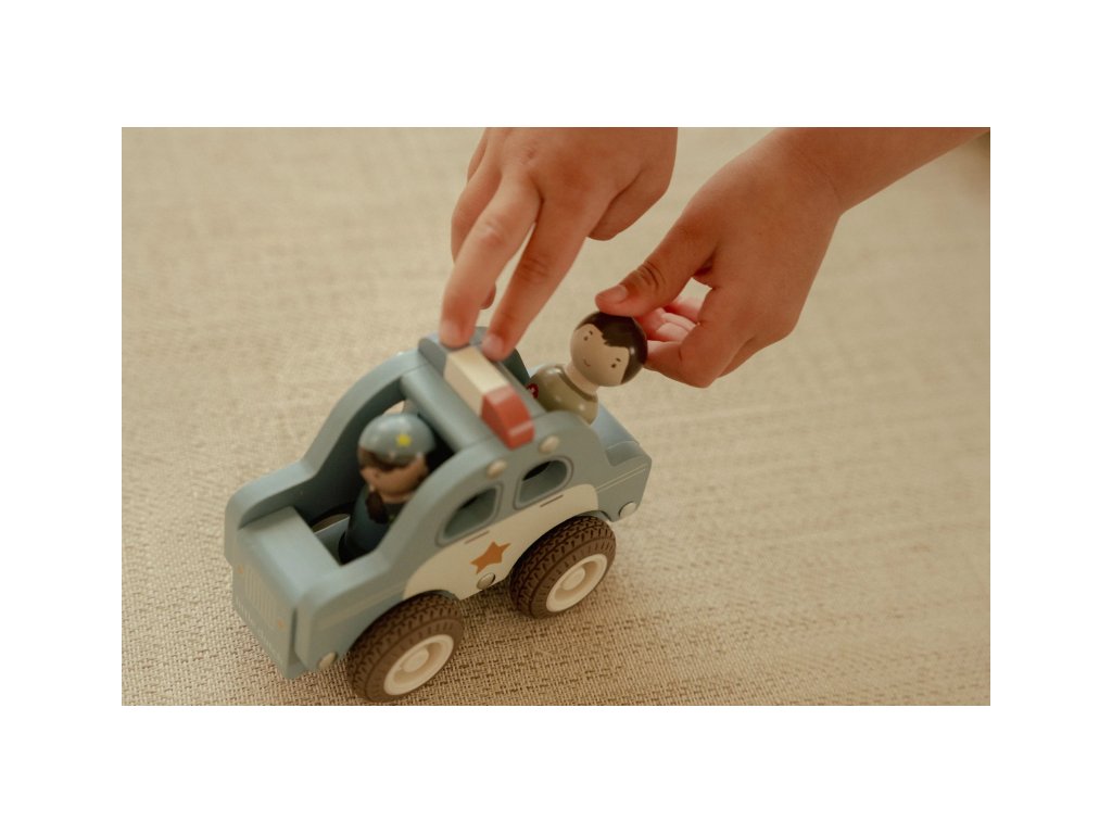 Robustné spracovanie, tichý a plynulý pojazd vďaka gumovým pneumatikám a drevená figúrka policajta pozývajú do napínavých naháňačiek, zatýkania zloduchov a hry na role. Otvorený dizajn sa ľahko uchopí aj malými rukami, takže auto je ideálne pre batoľatá.