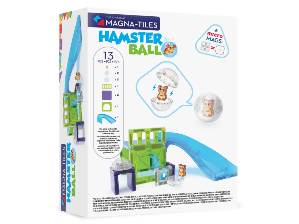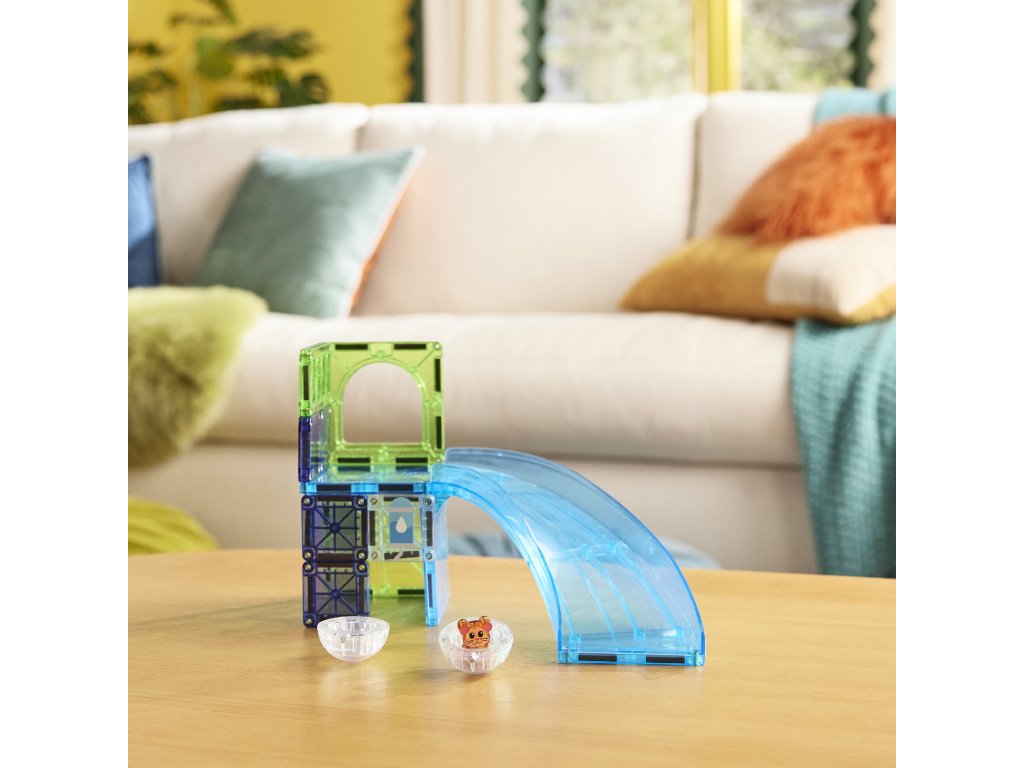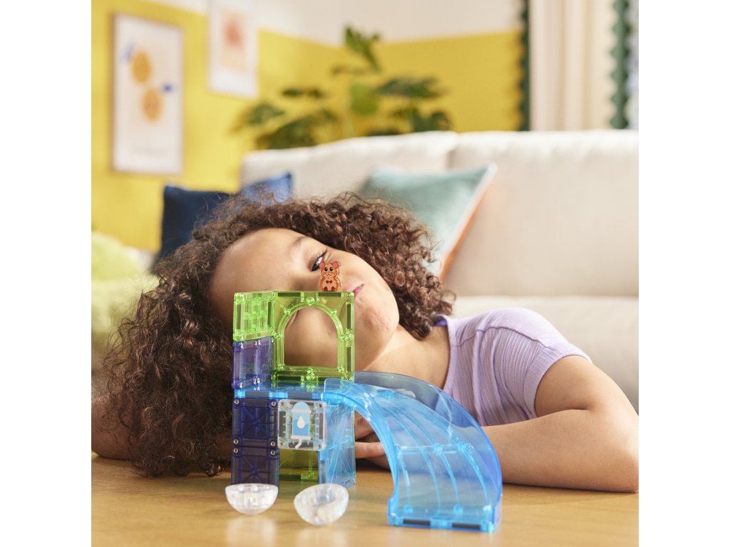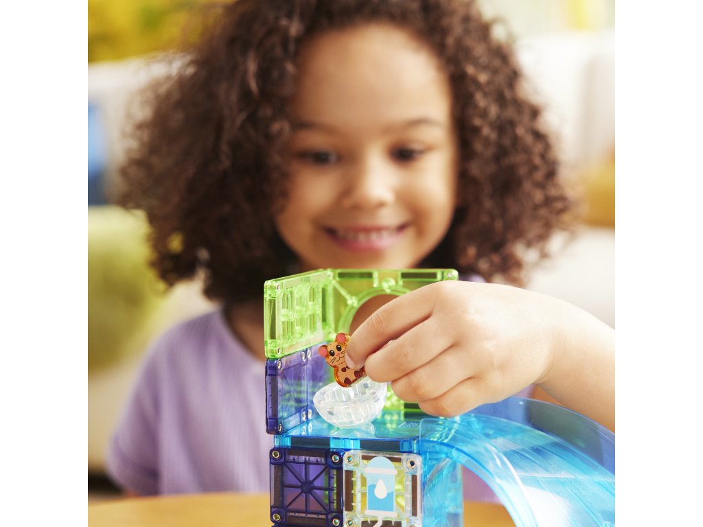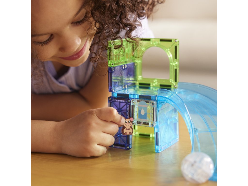 Sada MAGNA-TILES Hamster Ball spája svet magnetických dielikov s veselou hrou so škrečkom. V priehľadnej guličke sa pohybuje malý kamarát a deti môžu postaviť dráhu, po ktorej sa škrečok rozbehne. Aj menšia stavebnica prináša veľa možností, ako si tvoriť vlastné dobrodružstvá.