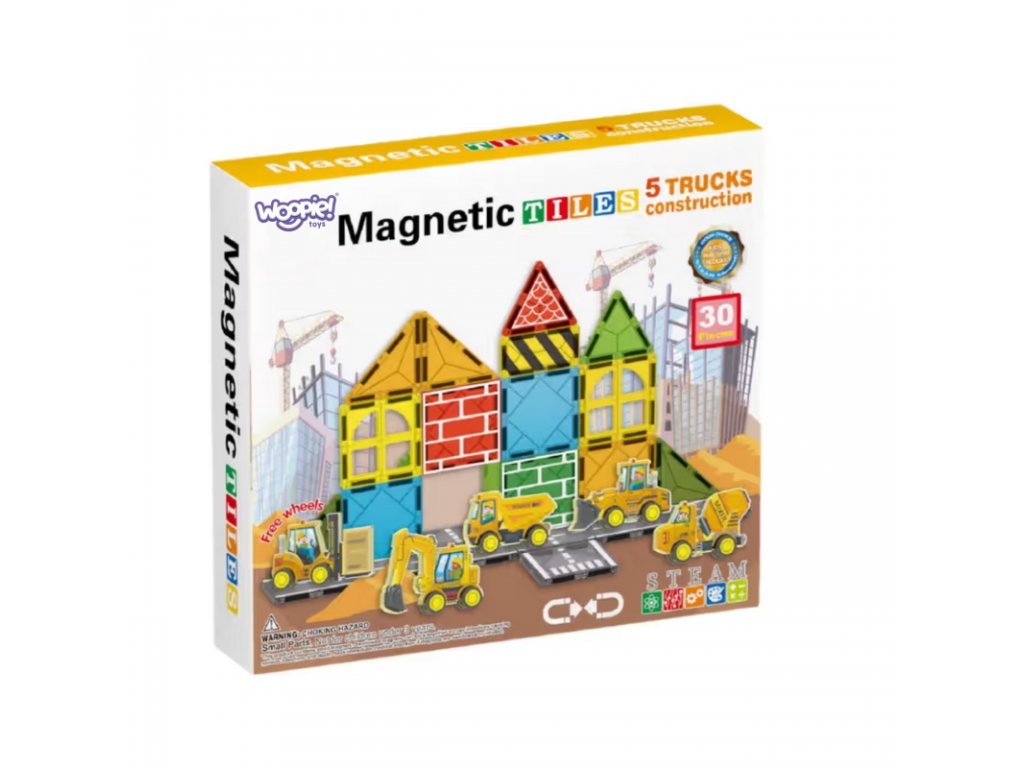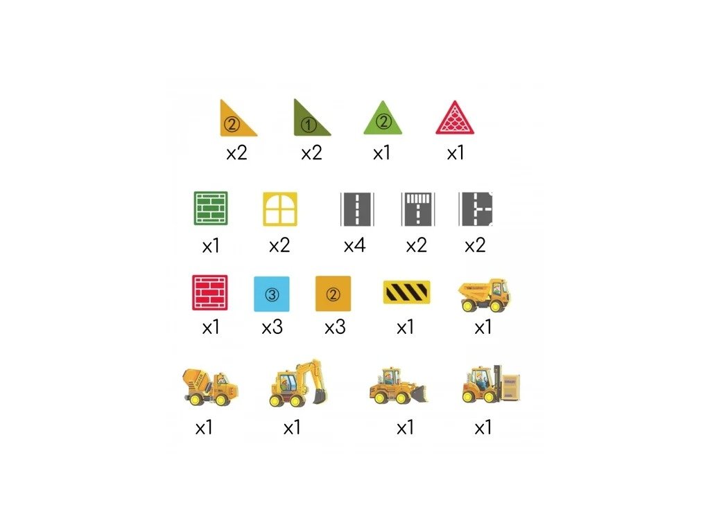 Magnetická stavebnica so stavebnými strojmi spája tvorenie s príbehom zo staveniska. Stabilné dieliky sa ľahko spájajú a deti z nich postavia farebné konštrukcie s cestami, po ktorých sa premávajú realistické vozidlá.