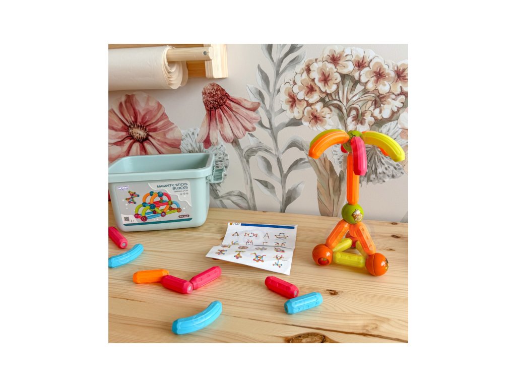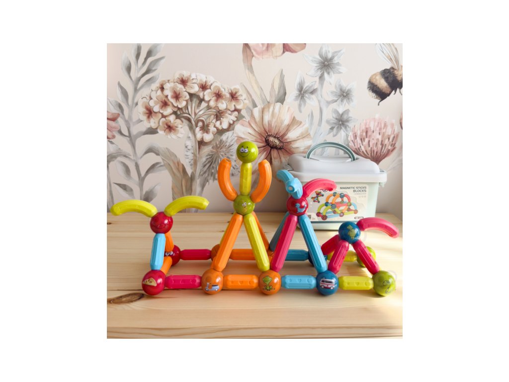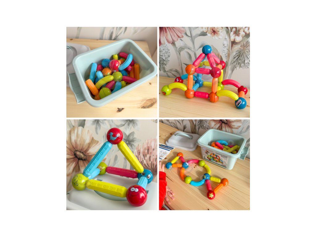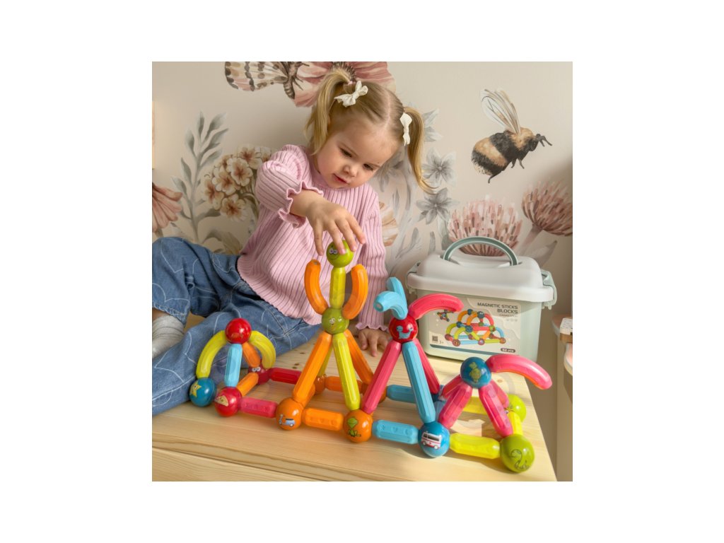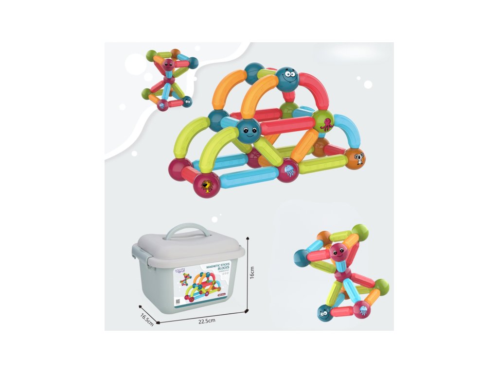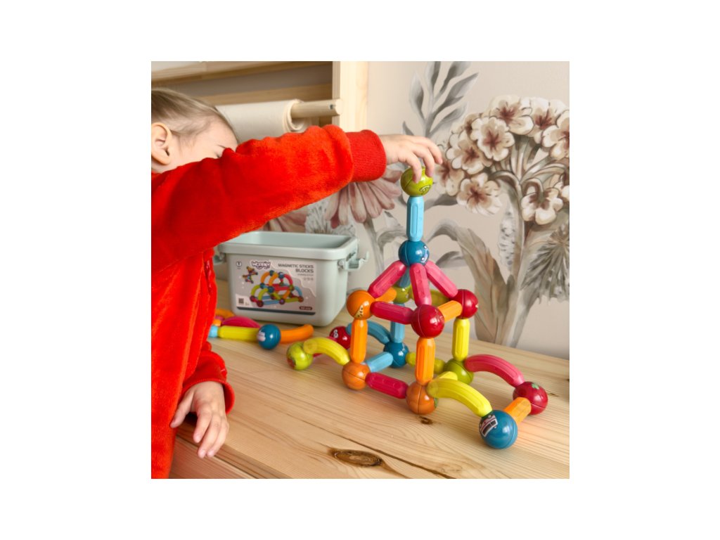 Čarovná magnetická stavebnica s veľkými magnetickými dielikmi. Magnetický svet je pre deti fascinujúci a spájaním štyroch rôznych magnetických dielikov môžu vytvoriť plošné 2D alebo priestorové 3D stavby. Každý dielik má zabudovaný silný magnet, vďaka ktorému je mimoriadne jednoduché stavať rôzne stavby. Dvojrozmerné útvary ako napríklad loď, vrtuľa, písmeno, číslica budú skvelým začiatkom dobrodružstva s magnetmi a trojrozmerné stavby už formujú detskú priestorovú predstavivosť.