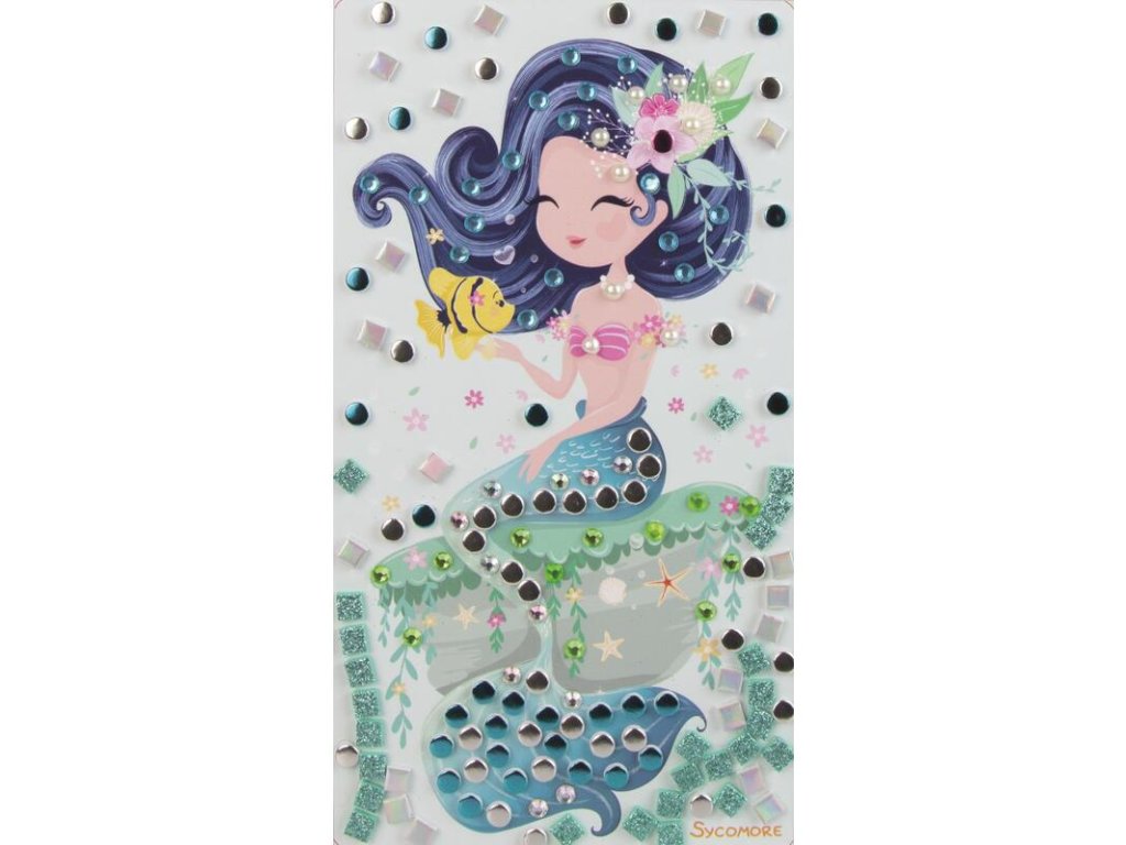 Nadizajnované vo Francúzsku a to sa hneď pozná. Nalepovacia mozaika s krásnymi ilustráciami morskej panny. Deti si dotvoria 3 obrázky pomocou penových samolepiek s trblietavým leskom, pomocou samolepiacich krúžkov s kovovým leskom a s lesklými kamienkami. Nakoniec si umelecké dielo môžu zavesiť do detskej izbičky.