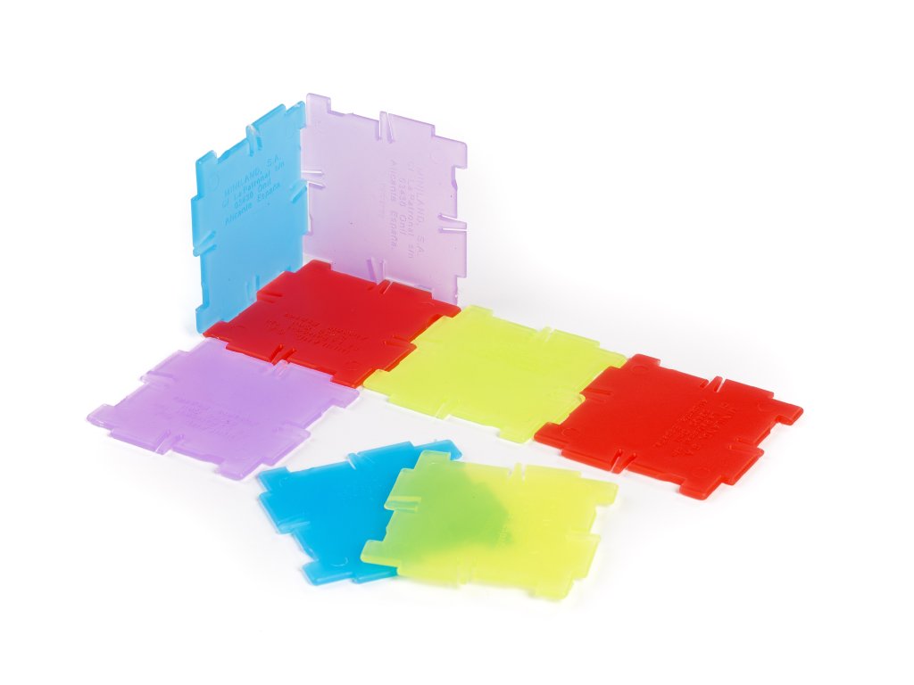 Súbor 56 ks priesvitných rôznofarebných dvojrozmerných mnohouholníkov, ktoré do seba zapadajú a umožňujú vytvoriť mnohosteny a priestorové trojrozmerné tvary. Naučte sa nové tvary a obdivujte ich farby pri hre na svetelnom stole. Táto matematická pomôcka je taká zábavná, že si ju deti zamilujú! Umožňuje názorné poznávanie 2D a 3D geometrických tvarov.