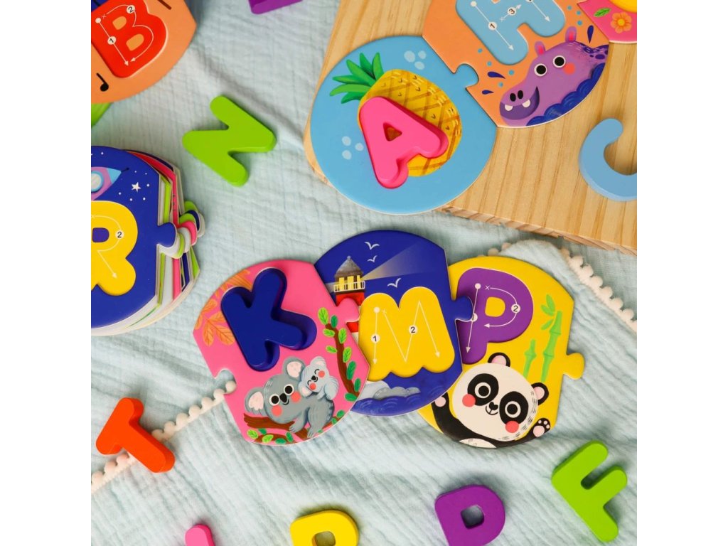 Skladaj puzzle a uč sa písmenká! Puzzle Abeceda je navrhnuté na Slovensku a obsahuje ilustrácie úspešnej slovenskej ilustrátorky Edity Hajdu. Písmenká pri jednotlivých obrázkoch tak naozaj zodpovedajú ich slovenskému pomenovaniu obrázkov.