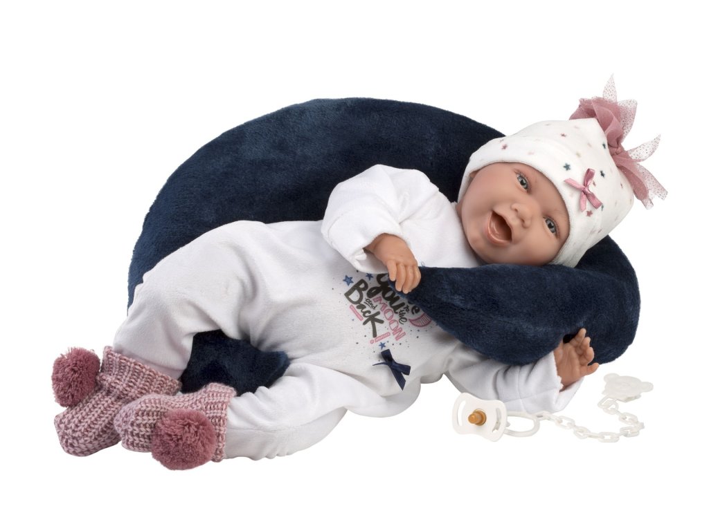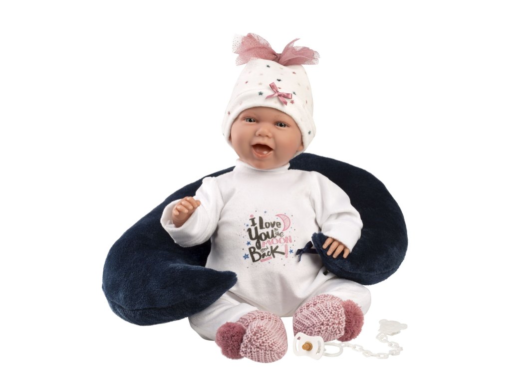 New Born od Llorens je realistické bábätko veľkosti 42 cm s mäkkým látkovým telom. Po stlačení na hrudník sa začne smiať a hovoriť „mama“ a „papa“, takže deti rýchlo vtiahne do hry na starostlivosť. Končatiny sú k telu prichytené kĺbom, bábätko je polohovateľné a dokáže aj sedieť. Bábika je ručne vyrobená, vyrobená v Španielsku a balená v darčekovej krabici.