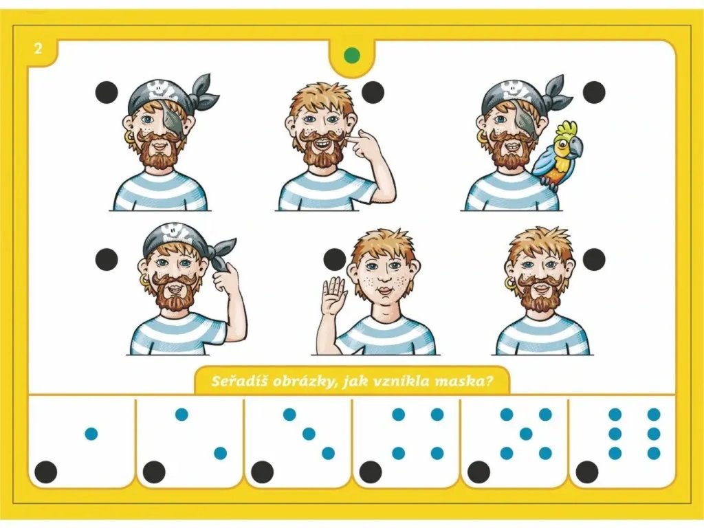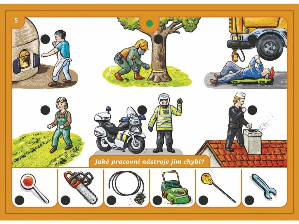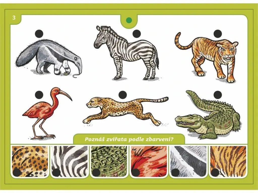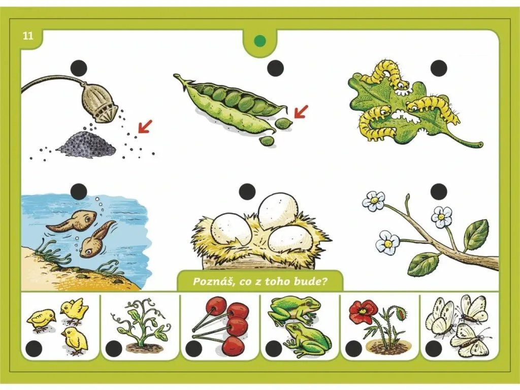 Hra obsahuje 16 listov so 176 farebnými obrázkami, na ktorých majú deti za úlohu spájať správne dvojice. Každý list je zameraný na určitú oblasť detského sveta. Keď odpovedia správne, elektronický skúšací obvod rozsvieti zelené svetielko, čo im dá okamžitú spätnú väzbu a podporuje ich motiváciu.