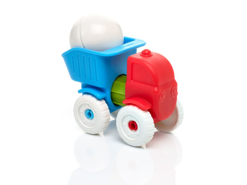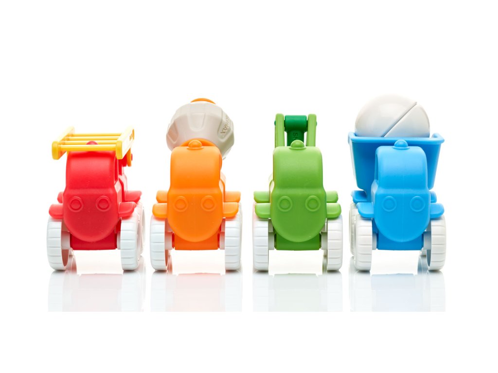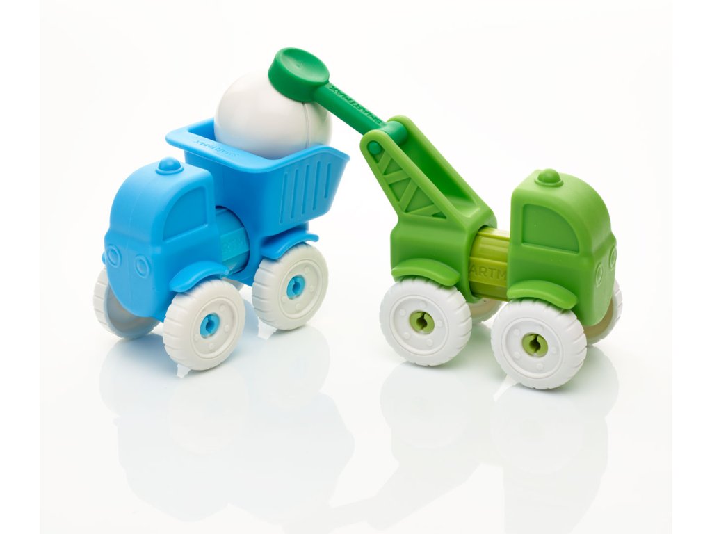 Súprava 4 magnetických tyčiek a nasadzovacích predných a zadných častí autíčok v štyroch rôznych farbách. Deti si tak ľahko zostavia 4 rôzne autíčka: hasičské auto, nákladiak, miešačku a nakladač. Na hranie majú tiež k dispozícii jednu magnetickú guľu, ktorá poslúži nielen ako náklad do nákladiaku, ale tiež umožňuje súpravu použiť ako prvú malú stavebnicu. Dieliky sú dostatočne veľké, príjemné a ľahké na manipuláciu. Ideálna jednoduchá stavebnica pre malé deti od 1 roka, ktorá využíva na spájanie jednotlivých častí magnetizmus. Balenie obsahuje celkom 13 dielikov: 4 magnetické tyčky, 4 predné a 4 zadné diely autíčok a 1 magnetickú guľu, ktorá poslúži nielen ako náklad do nákladiaku, ale umožňuje súpravu použiť ako prvú malú stavebnicu.