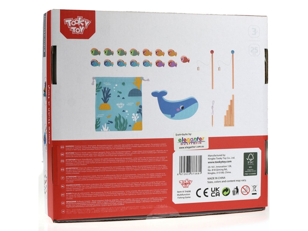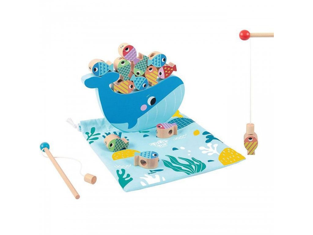 V jednom vrecúšku nájdete všetko na klasickú spoločenskú hru chytanie rybičiek, balančnú hru, nasadzovanie rybičiek na paličky, triedenie aj na navliekanie. Celé balenie obsahuje spolu 25 krásne vypracovaných kúskov z kvalitného dreva a bezpečných farieb.