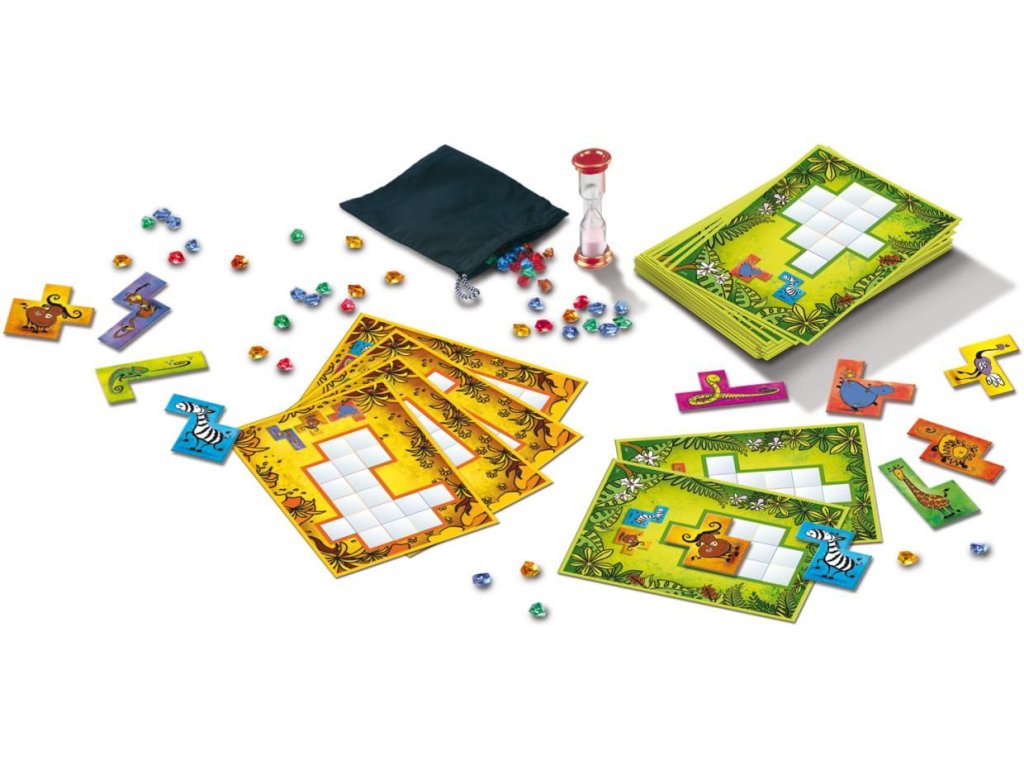 Nádherná hra, ktorá má krásne spracovanie, je netradičná, veľmi zaujímavá a zábavná. Z hľadiska trénovania logiky a priestorovej predstavivosti je veľmi hodnotná. Ubongo Junior je jednou z variant obľúbenej rodinnej hry Ubongo, tentokrát je hra prispôsobená tým najmenším hráčom od 5 rokov. Všetci hráči sa snažia zostaviť skladačku z farebných dielikov, na ktorých sú vyobrazené zvieratká. Niečo na spôsob Tetris. Kto zadanie zloží ako prvý, musí zavolať "Ubongo" a získa cenné drahokamy. Zvyšní hráči však tiež majú nárok na odmenu, ak stihnú skladačku zložiť v časovom limite. Víťazom sa stane ten hráč, ktorý počas hry nazbiera najviac drahokamov. Hra je určená pre 2-4 hráčov, približná doba hry: 20 minút